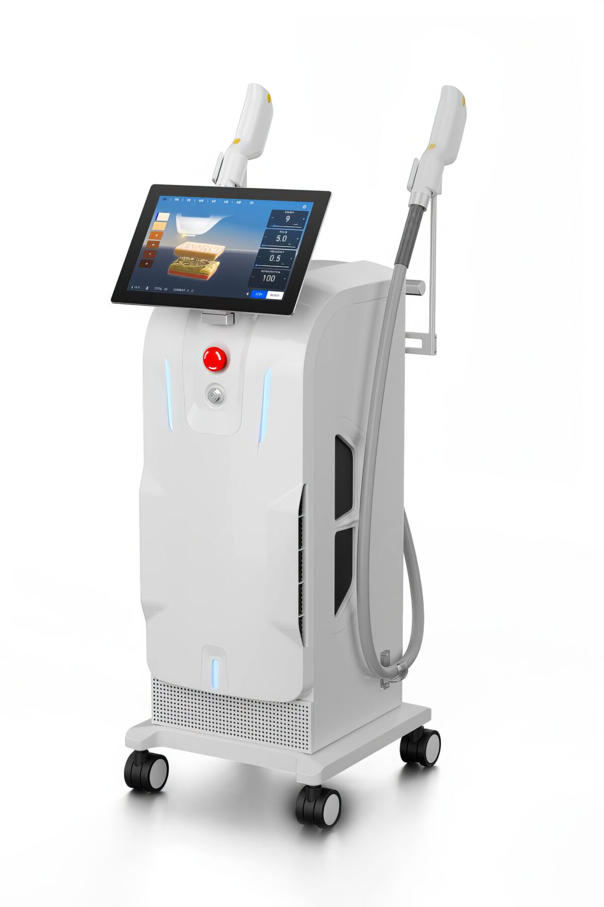 Комбинированная система охлаждения (водяная + воздушная) защищает эпидермис от перегрева, минимизирует болезненные ощущения и позволяет использовать высокие энергии, необходимые для работы.